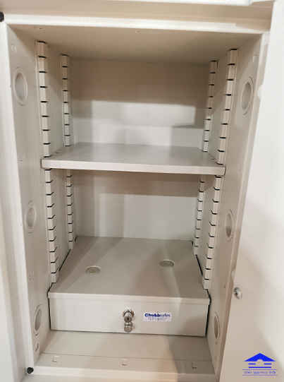 - ระบบล็อค 1 กุญแจ แบบ Duble bit (เฟือง 2 ด้าน) 8 แถบระดับ | 1 รหัส แบบ 3 ตัวเลข ผ่านมาตรฐาน UL Group2
