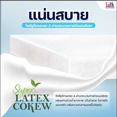 เทคโนโลยี Super Latex Cokew ผ่านกระบวนการอัดแน่นพิเศษ ผสานด้วยน้ำยางพารา ทำให้ที่นอนแน่น รับน้ำหนักได้มาก