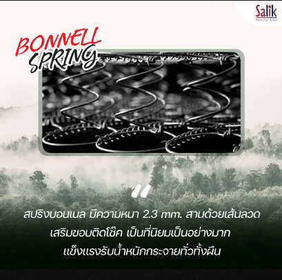 เทคโนโลยี Bonnel Spring ซึ่งเป็นสปริงที่มีขนาดหน้าตัดใหญ่ 2.3mm ช่วยเสริมความแข็งแรงให้กับโครงสร้าง ให้น้ำหนักกระจายตัวทั่วทั้งตัวที่นอน