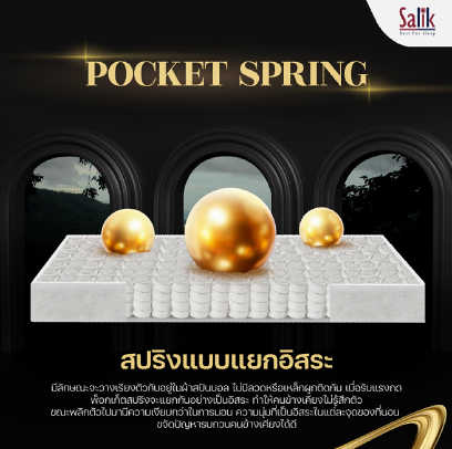 • เทคโนโลยี Pocket Spring กระจายน้ำหนักบนสปริงอิสระ ลดการรบกวนเมื่อพลิกตัว